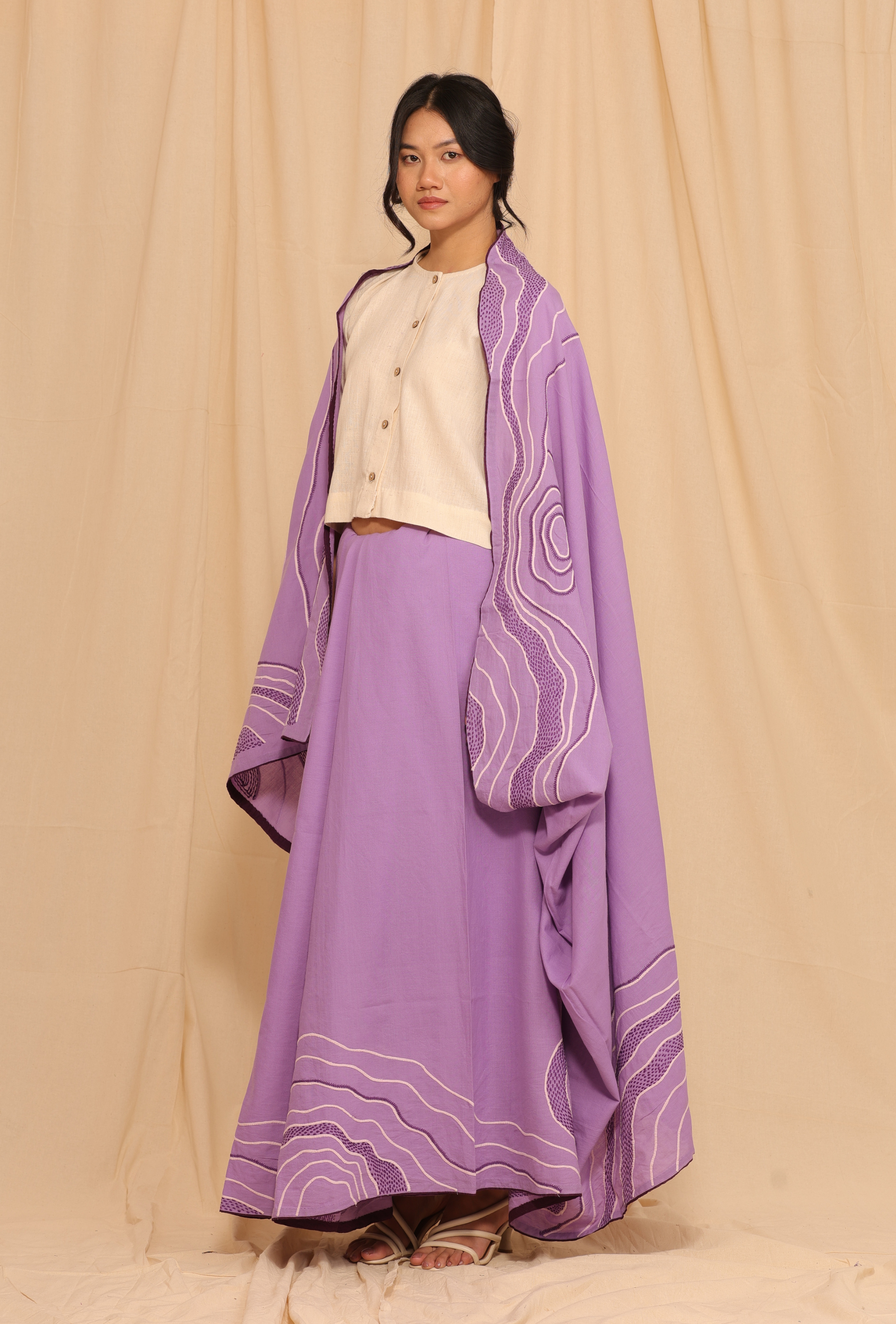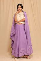 Softly radiant in hue and rich in heritage, this saree is a quiet celebration of craft and community. Woven from breathable, yarn-dyed handloom cotton in a serene lilac tone, it brings together the finesse of Kutch’s weavers and the artistry of its embroidery clusters. Each piece is hand-embroidered by women artisans working in community-based clusters, reviving traditional Rabari techniques through a modern, minimalist lens.