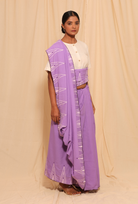 Softly radiant in hue and rich in heritage, this saree is a quiet celebration of craft and community. Woven from breathable, yarn-dyed handloom cotton in a serene lilac tone, it brings together the finesse of Kutch’s weavers and the artistry of its embroidery clusters. Each piece is hand-embroidered by women artisans working in community-based clusters, reviving traditional Rabari techniques through a modern, minimalist lens.