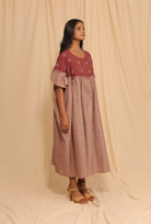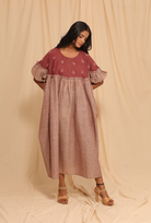 MAUVE HARVEST - Handwoven Flowy Fit Hand Embroidery Dress